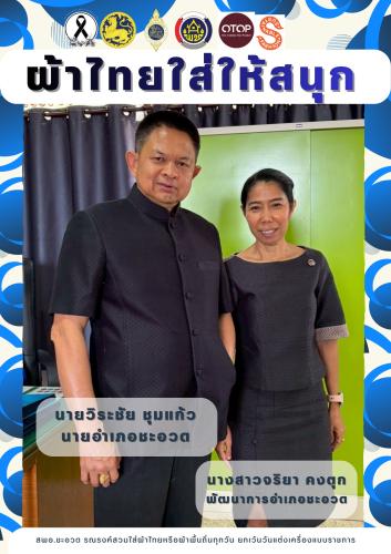 สำนักงานพัฒนาชุมชนอำเภอชะอวด ขอเชิญชวนข้าราชการ/ลูกจ้างหน่วยงาน ผู้นำท้องถิ่น ท้องที่ กลุ่ม องค์กร ภาคีเครือข่ายและประชาชนร่วมสวมใส่ผ้าไทย เพื่อขับเคลื่อนสู่การสืบสานอนุรักษ์ศิลป์ผ้าถิ่นไทยดำรงไว้ในแผ่นดิน "ผ้าไทยใส่ให้สนุก" ตามพระดำริสมเด็จพระเจ้าลูกเธอ เจ้าฟ้าสิริวัณณวรี นารีรัตนราชกัญญาและตามมติ ครม. เมื่อวันที่ 9 มิถุนายน 2563 ในการส่งเสริม สนับสนุนการใช้และสวมใส่ผ้าไทย