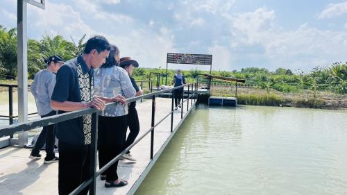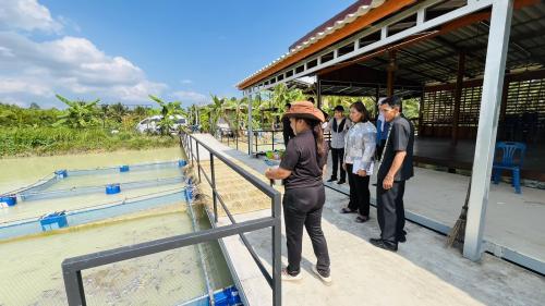 นางสาวนวภัทร หอมหวลพัฒนาการจังหวัดนครศรีธรรมราช พร้อมด้วย นางสุพิศ บุญทรง ผู้อำนวยการกลุ่มงานส่งเสริมฯ และเจ้าหน้าที่พัฒนาชุมชนจังหวัดนครศรีธรรมราช และนางสาวจริยา คงตุก พัฒนาการอำเภอชะอวด เจ้าหน้าที่พัฒนาชุมชนอำเภอชะอวด ลงพื้นที่ เยี่ยมชมศูนย์เรียนรู้ตามหลักทฤษฏีใหม่ รูปแบบ “โคก หนอง นา” แปลงนางวิไล จิตรเวช หมู่ที่ 4 ตำบลขอนหาด อำเภอชะอวด จังหวัดนครศรีธรรมราช